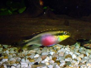 The Mikrogeophagus altispinosus, Bolivian Butterfly or Bolivian Ram cichlid is a dwarf cichlid that lives in fresh waters of Brazil, Bolivia and in the Amazon River basin. They grow to be about 3 inches and are very popular among aquarium owners. Bolivian Rams can adapt to a wider range of water chemistries and are fairly mild mannered, which makes them a suitable choice for some community aquariums. We suggest keeping your Bolivian Rams with other dwarf cichlids like German Blue Rams, Apistogramma cacatuoides or Apistogramma borelli.